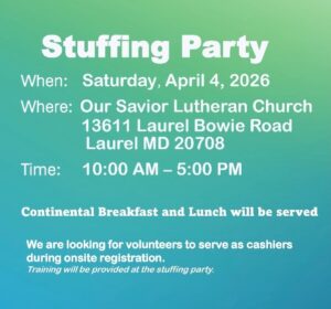 CPRCNA Registration Committee is hosting a Stuffing Party! Help stuff the CPRCNA convention packets! Food, fun fellowship...and service! flyer