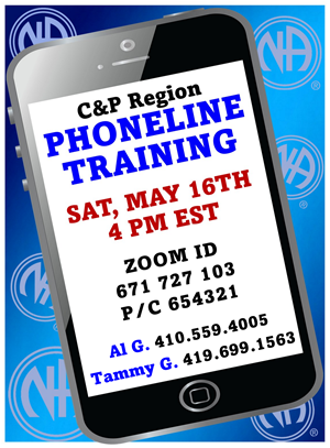 C&P Region is hosting Virtual Phoneline Training Saturday May 16th, 2026 4 PM EST Zoom ID: 671 727 103; P/C 654321 flyer flyer - 4pp
