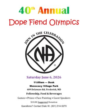 Jun 6 FANA 40th Annual Dope Fiend Olympics 11:00 AM - 7:00 PM Monocacy Village Park 409 Delaware Rd., Frederick Event Details Get Directions