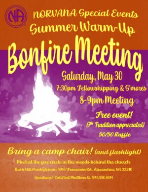 NORVANA Summer Warm-Up Bonfire Meeting May 30 NORVANA Summer Warm-Up Bonfire Meeting 7:30 PM - 9:00 PM Free