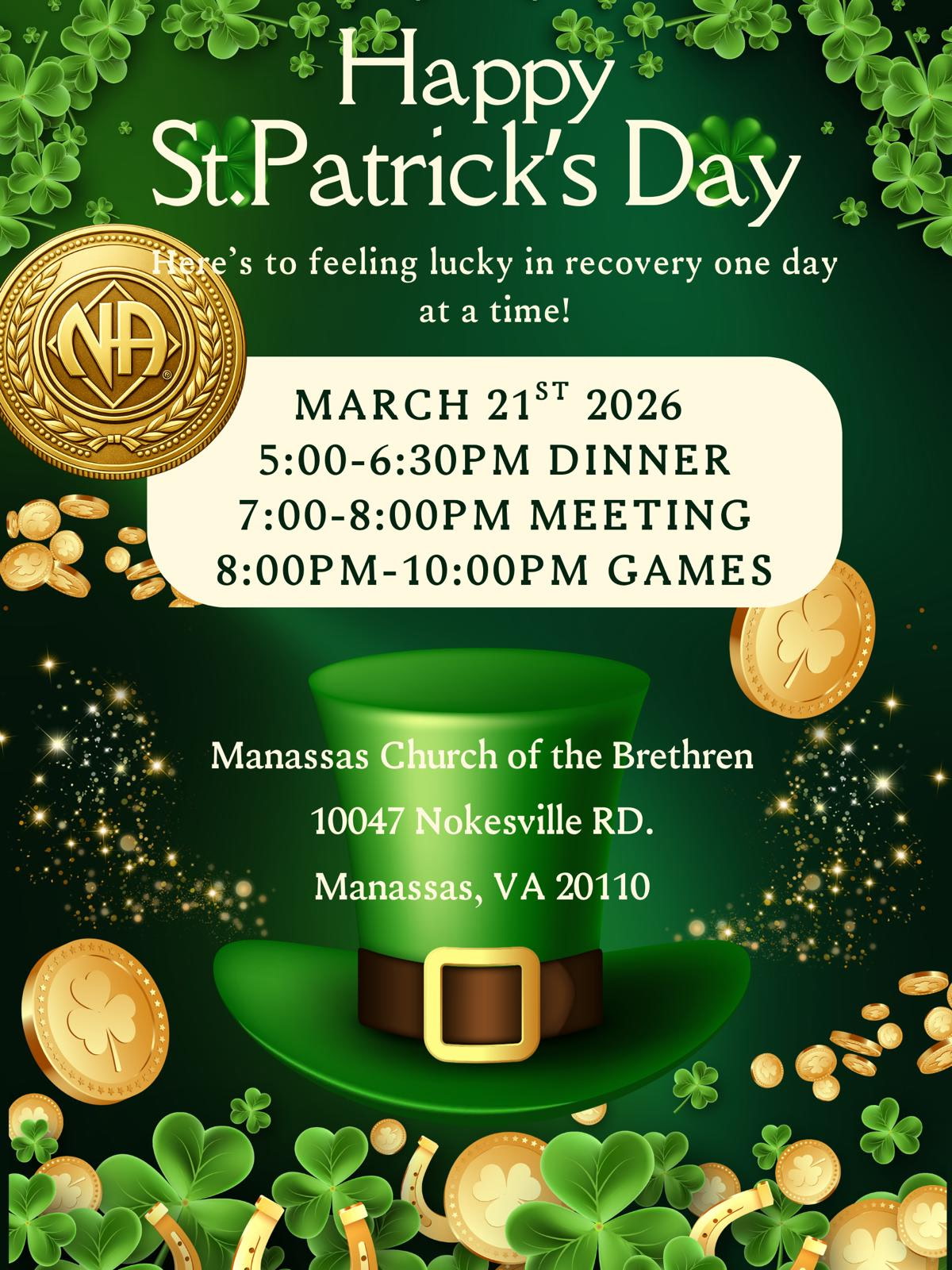 St. Patrick’s Event – March 21st – 5pm-10pm – Manassas Church of the Brethren